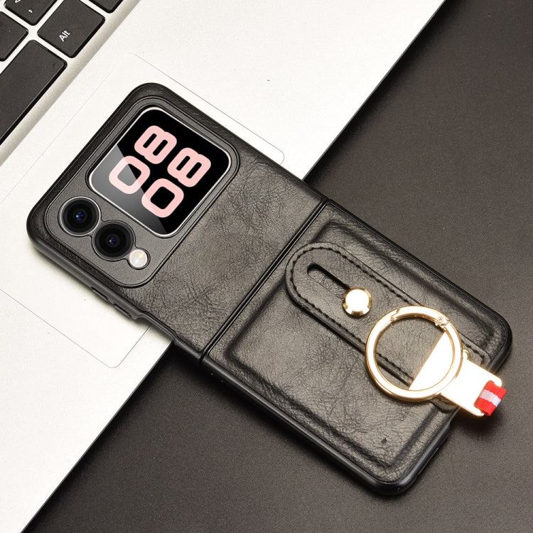 Funda para Teléfono Plegable Huawei Nova Flip con Textura Rómbica y Cordón (Negro)