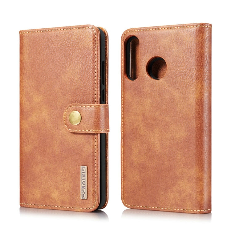 Funda de Cuero Magnético Desmontable Dg.Ming para Huawei P30 Lite con Soporte y Ranuras (Marrón)