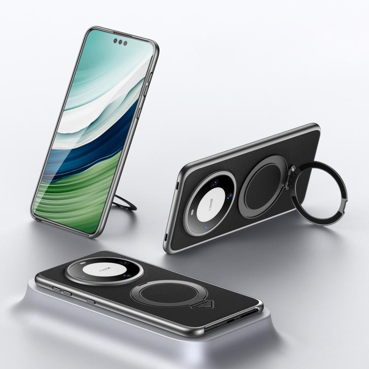 Funda para Teléfono Huawei Pura 70 con Soporte Magnético Magsafe de Cuero (Negro)