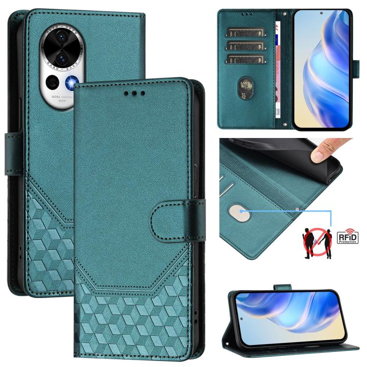 Funda de Cuero Rfid con Relieve en Panal para Huawei Nova 13/Nova 12 (Verde Pavo Real)