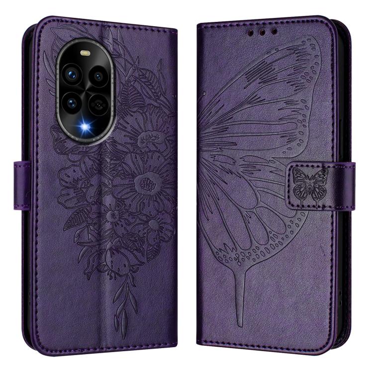 Funda de Cuero Huawei Nova 13 Pro con Diseño de Mariposa en Relieve (Morado Oscuro)