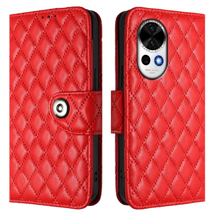 Funda de Cuero con Tapa y Textura Rómbica para Huawei Nova 13/Nova 12 con Cordón (Rojo)