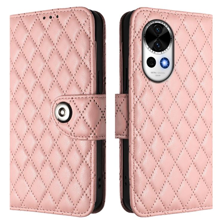 Funda de Cuero con Tapa y Textura Rómbica para Huawei Nova 13/Nova 12 con Cordón (Rosa)
