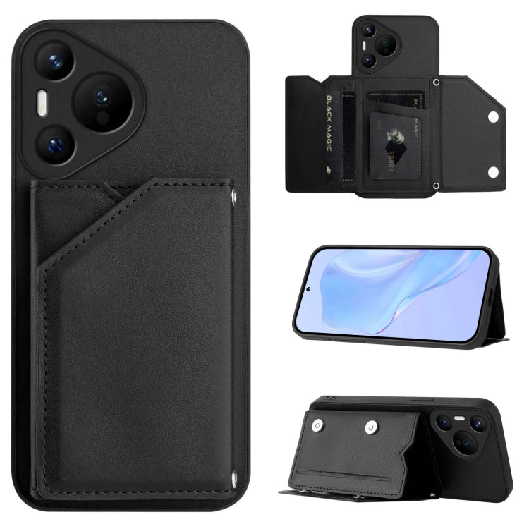 Funda para Teléfono Huawei Pura 70 Skin Feel con 4 Ranuras y Correa para Muñeca (Negra)