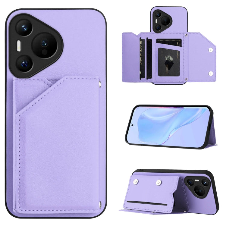 Funda para Teléfono Huawei Pura 70 Skin Feel con 4 Ranuras para Tarjetas y Correa (Morado)