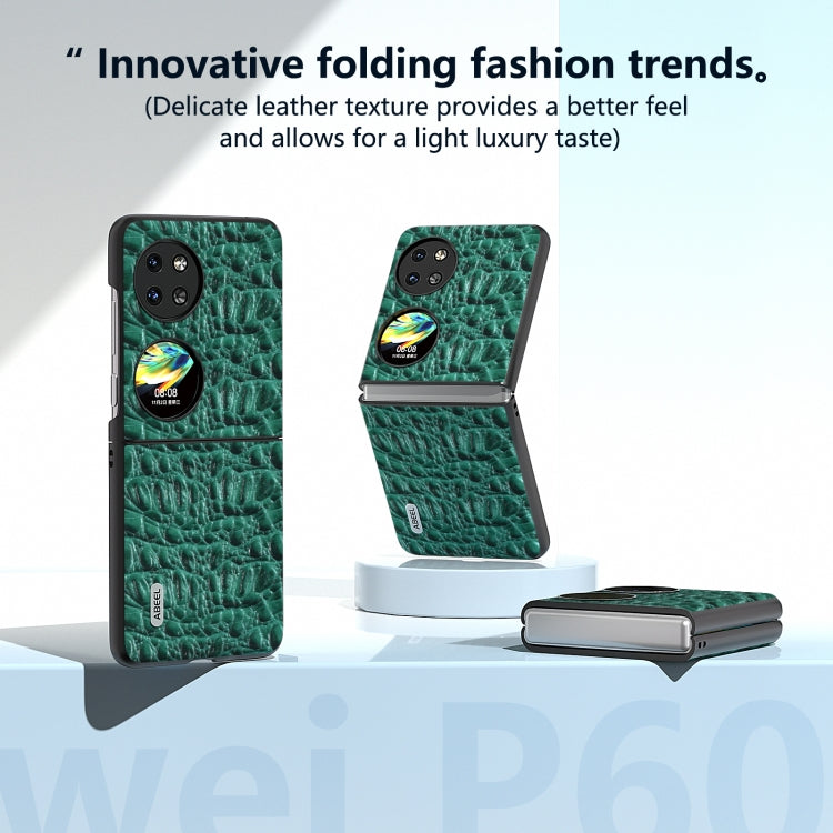 Funda para Huawei P60 Pocket Abeel Cuero Genuino Patrón Cocodrilo Borde Negro (Azul)