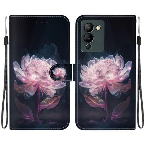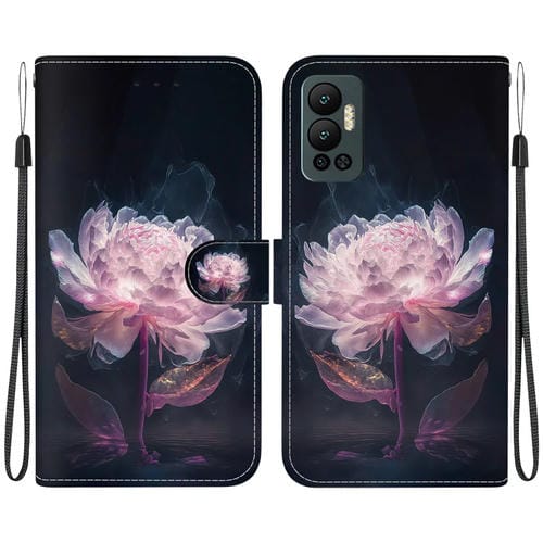 Estuche de Cuero para Infinix Hot 12 con Dibujo Coloreado y Textura de Cristal (Peonía de Cristal)