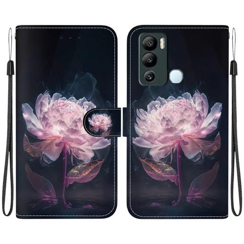 Funda de Cuero para Infinix Smart 6 Plus con Dibujo Coloreado y Textura de Cristal (Peonía Púrpura)