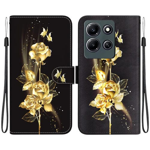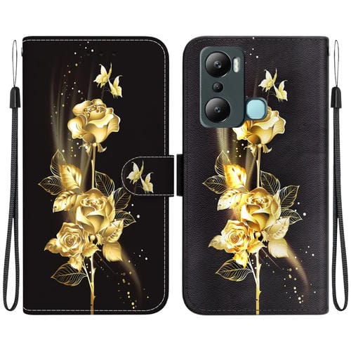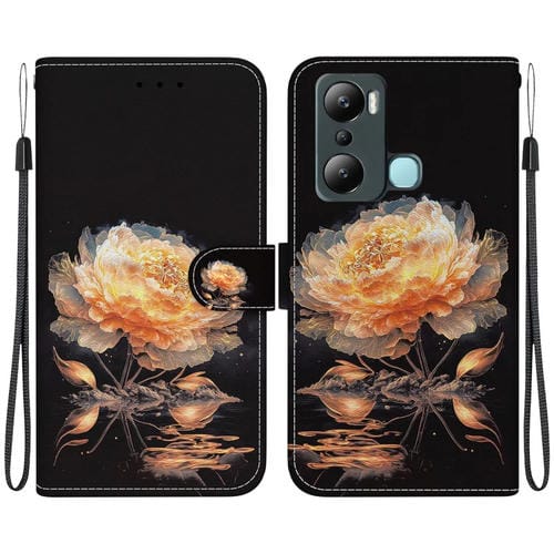 Funda de Cuero para Infinix Smart 6 Plus con Dibujo Coloreado y Textura de Cristal (Peonía Dorada)