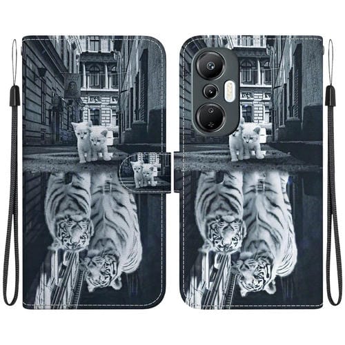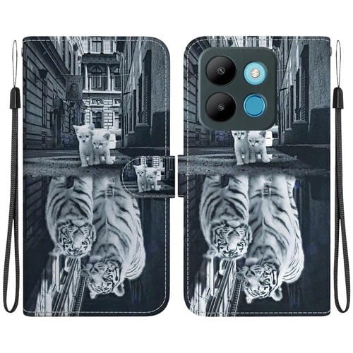 Funda de Cuero para Infinix Hot 20S con Dibujo Coloreado y Textura de Cristal (Reflejo de Tigre Gato)
