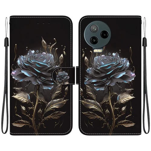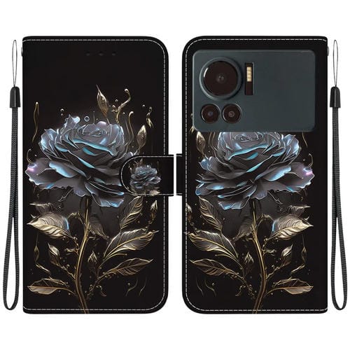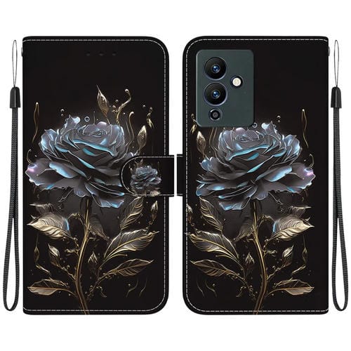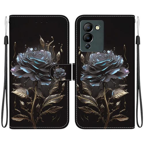 Funda de Cuero para Infinix Note 12 Pro 5G con Dibujo Coloreado y Textura de Cristal (Rosa Negra)