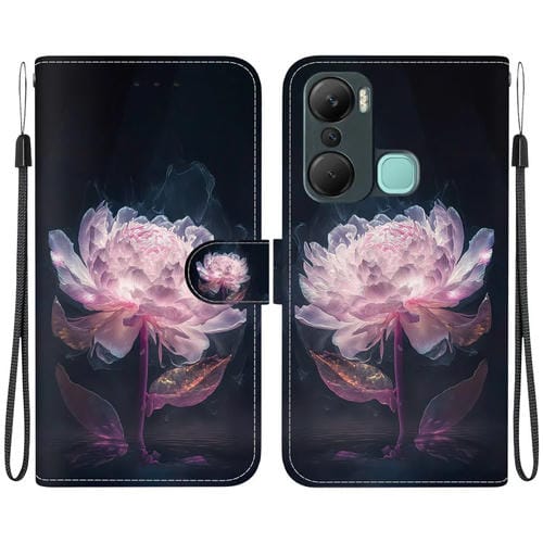 Funda de Cuero para Infinix Hot 20I con Dibujo Coloreado y Textura de Cristal (Peonía Púrpura)