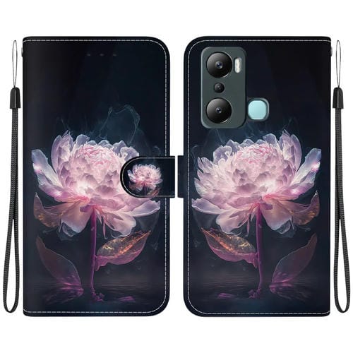 Funda de Cuero para Infinix Smart 6 con Dibujo Coloreado y Textura de Cristal (Peonía Púrpura)