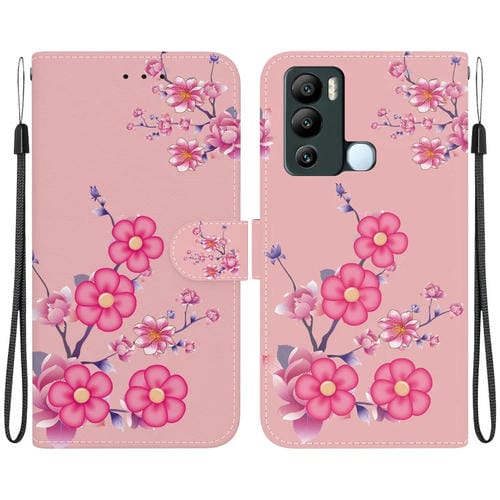 Funda de Cuero para Infinix Hot 20I con Dibujo Coloreado y Textura de Cristal (Flores de Cerezo)