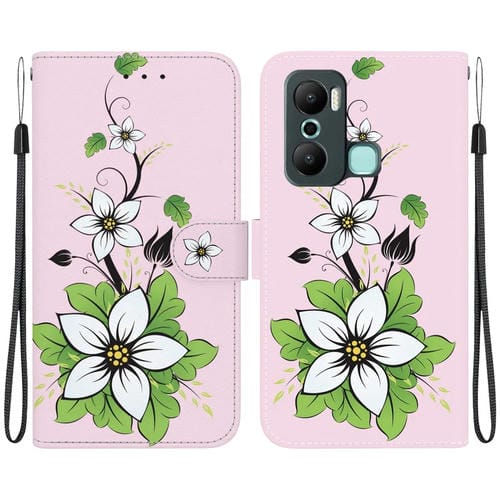 Funda de Cuero para Infinix Hot 20 Play con Dibujo Coloreado y Textura de Cristal (Lirio)