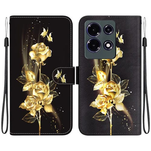 Funda de Cuero para Infinix Note 30 Vip con Dibujo Coloreado Mariposa Dorada Rosa Crystal Texture