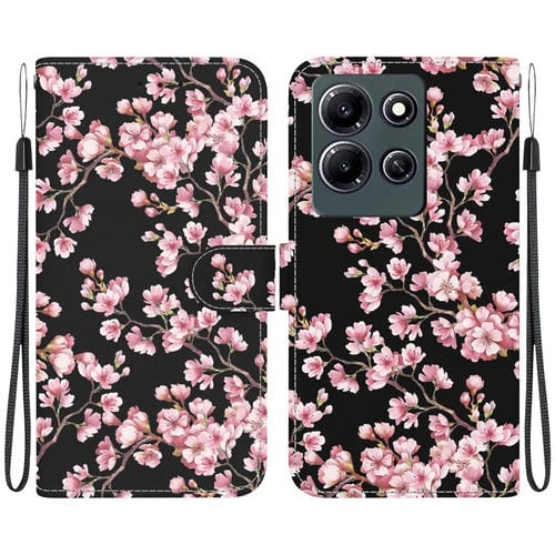 Funda de Cuero para Infinix Hot 20I con Dibujo Coloreado y Textura de Cristal (Flor de Ciruelo)