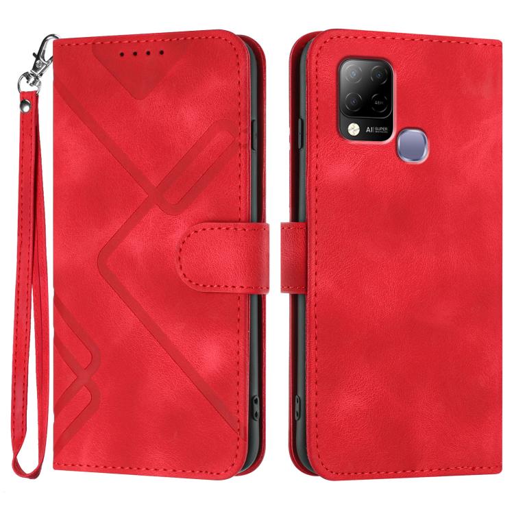 Funda de Cuero para Infinix Hot 12I con Diseño de Líneas y Tacto Suave (Rojo)