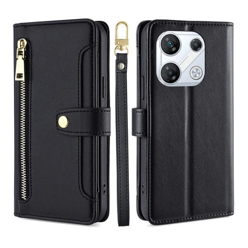 Funda de Cuero para Infinix Gt 10 Pro 5G Lite con Textura de Oveja y Cremallera Cruzada (Negro)