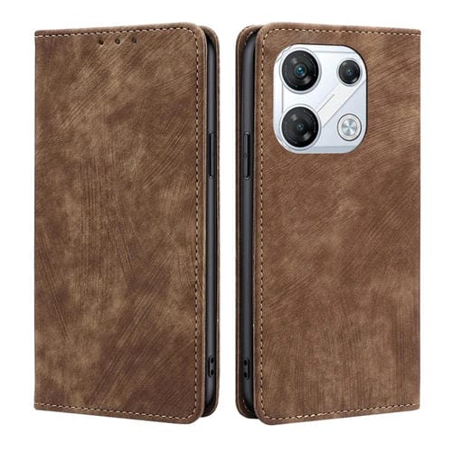 Funda de Cuero Magnética para Infinix Gt 10 Pro 5G con Rfid y Cepillo Antirrobo (Marrón)