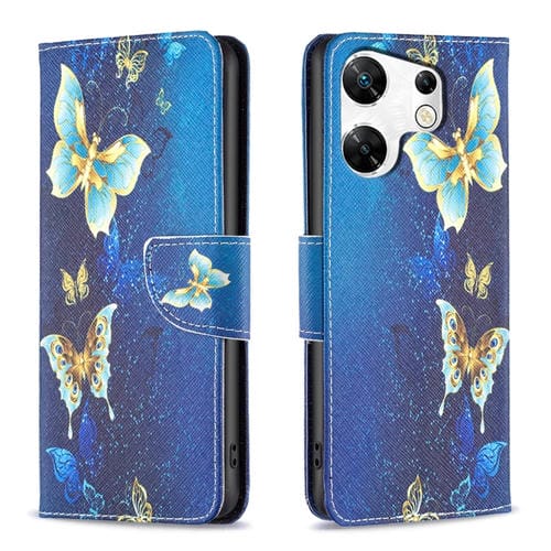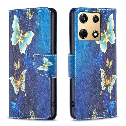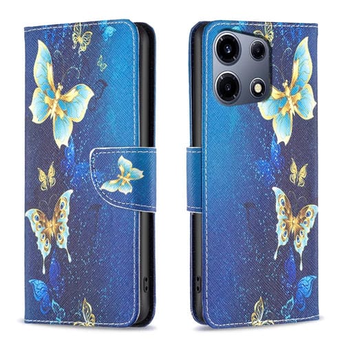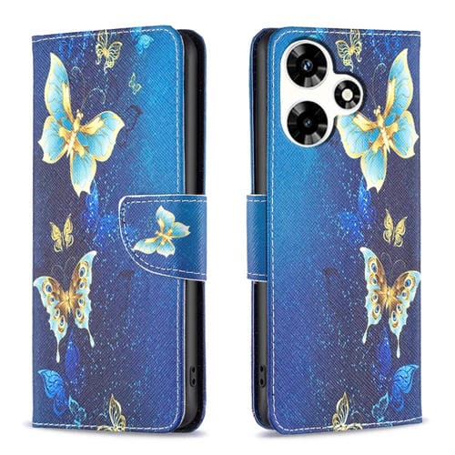 Funda de Cuero Infinix Hot 30 con Patrón Dibujo Mariposa Dorada (Colores)