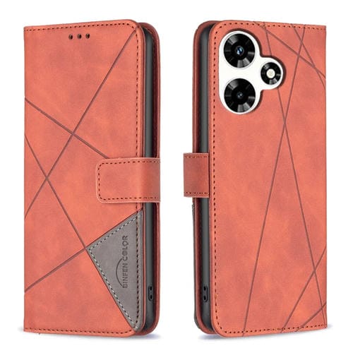 Funda para Teléfono Infinix Hot 30 Cuero Textura de Rombo Hebilla Magnética (Marrón)