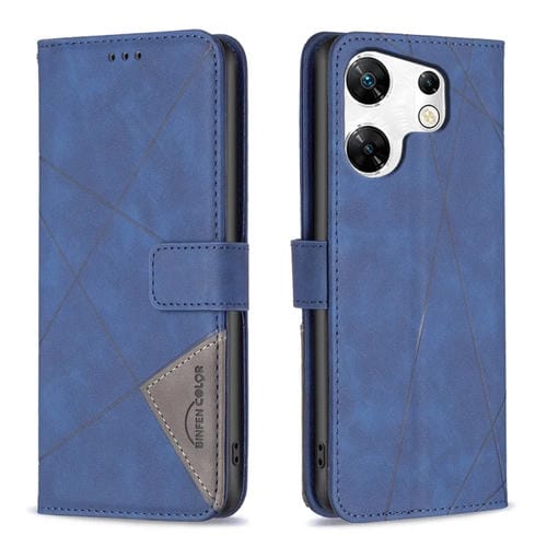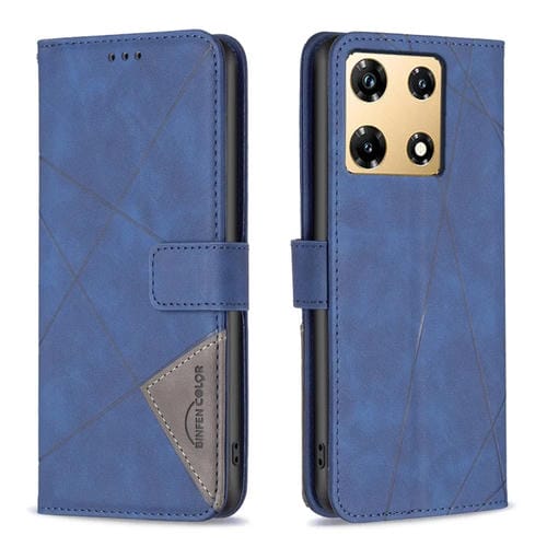 Funda de Cuero para Infinix Note 30 Pro con Textura de Rombo y Hebilla Magnética (Azul)