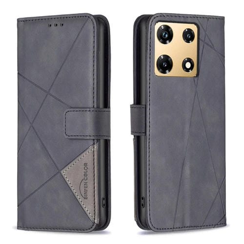 Funda de Cuero para Infinix Note 30 Pro con Textura de Rombo y Hebilla Magnética (Negro)