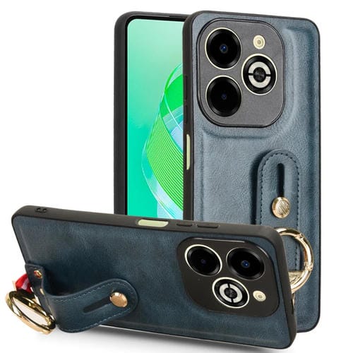 Funda de Cuero con Correa para Cuello para Infinix Smart 8 Plus y Smart 8 Pro (Azul)