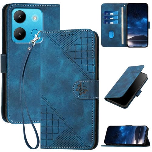 Funda de Cuero con Tapa para Infinix Smart 7 India Yx0080 con Diseño Mariposa y Cordón (Azul Claro)