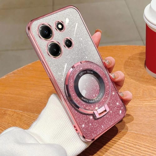 Funda de TPU con Soporte Redondo y Purpurina Degradada Plateada para Infinix Note 30I (Rosa)