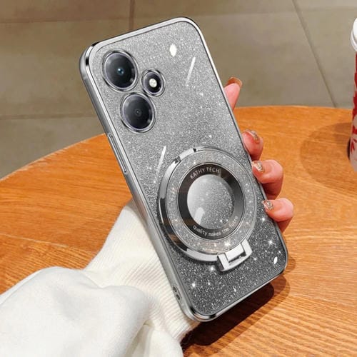 Funda TPU con Soporte Redondo y Purpurina Degradada para Infinix Hot 30 Play (Plateada)