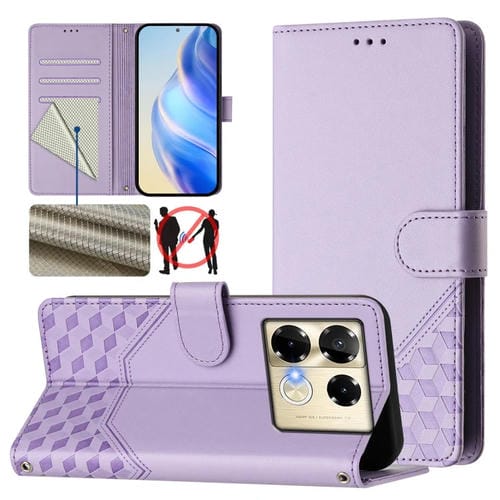 Funda de Cuero Rfid con Relieve en Panal para Infinix Note 40 Pro 5G/4G (Morado Claro)