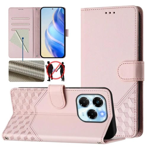 Funda de Cuero RFID con Relieve en Panal para Infinix Hot 50 5G (Rosa)