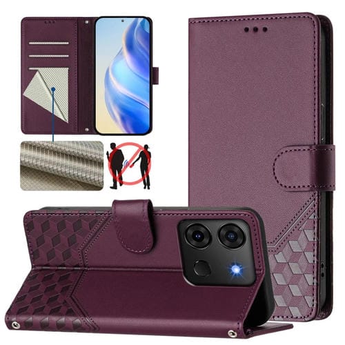 Funda de Cuero RFID con Relieve en Panal para Infinix Hot 20 4G (Violeta)