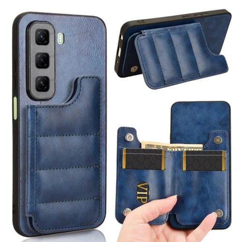 Funda para Teléfono Infinix Hot 50 5G con Diseño de Vaca y Tarjeta de Costura (Azul)