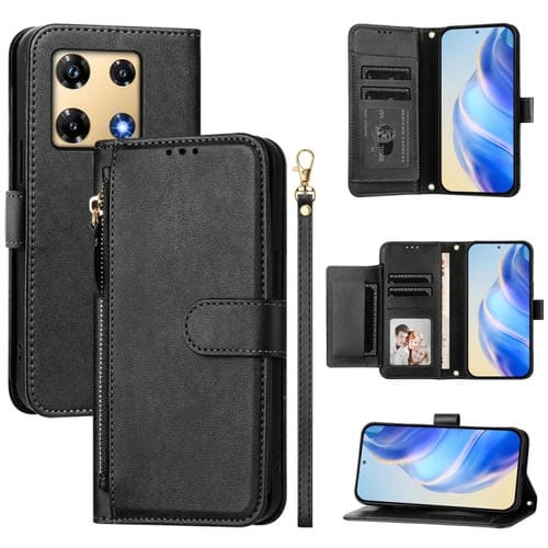 Funda de Cuero con Cremallera y Ranuras para Tarjetas para Infinix Note 40X 5G (Negro)