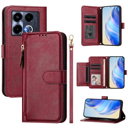 Funda de Cuero con Cremallera y Ranuras para Tarjetas para Infinix Note 40X 5G (Rojo Oscuro)