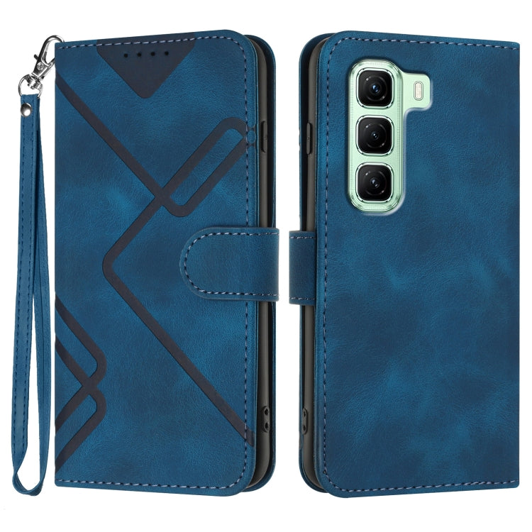 Funda de Cuero para Infinix Hot 50 5G con Diseño de Líneas y Tacto Suave (Azul)