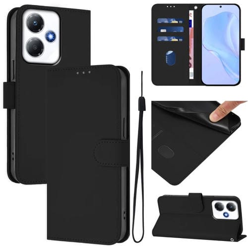 Funda de Cuero con Cordón para Teléfono Infinix Hot 30 Play NFC 4G (Negro)