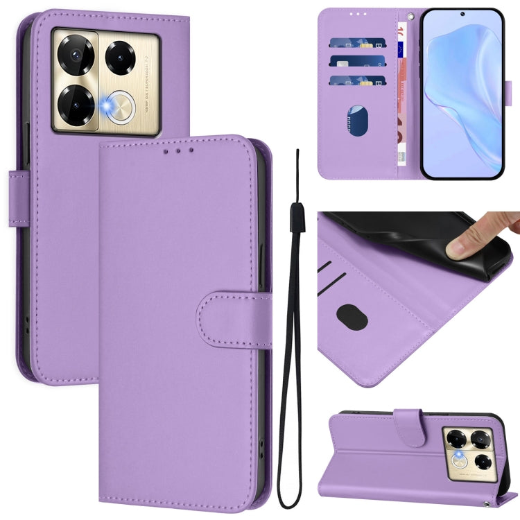 Funda de Cuero con Cordón para Teléfono Infinix Note 40 Pro 4G con Tacto de Piel (Morado Lavanda)