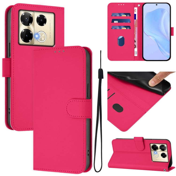 Funda de Cuero con Cordón para Teléfono Infinix Note 40 Pro 4G con Tacto de Piel (Rojo Rosa)