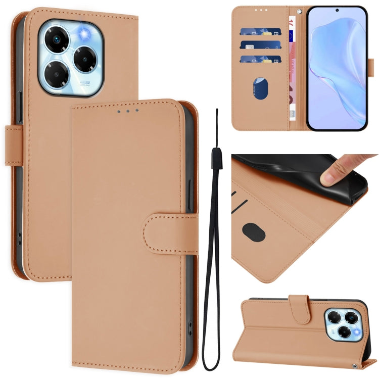 Funda de Cuero con Cordón para Infinix Hot 50 5G con Tacto de Piel (Marrón)