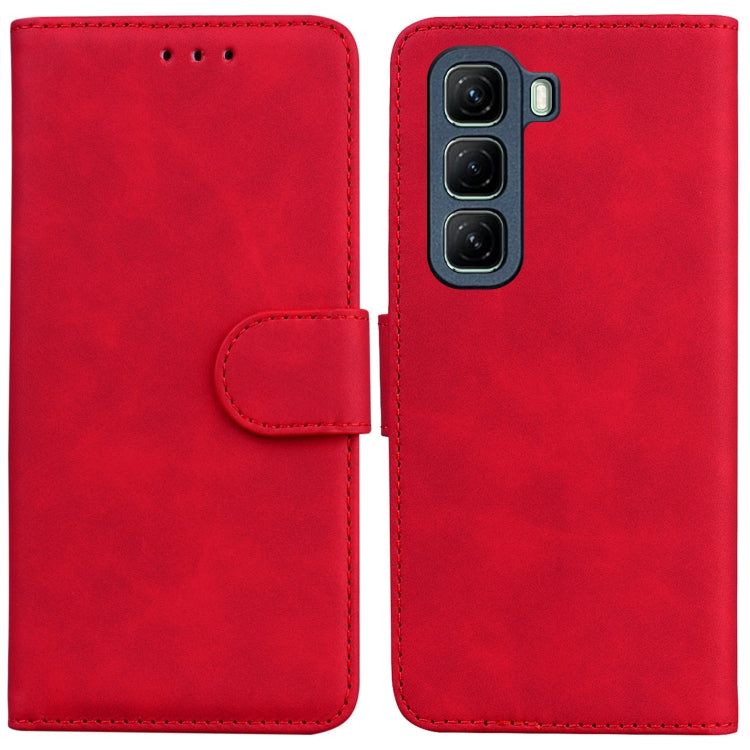 Funda de Cuero con Tapa para Infinix Hot 50 5G (Rojo) Color Puro Tacto Agradable