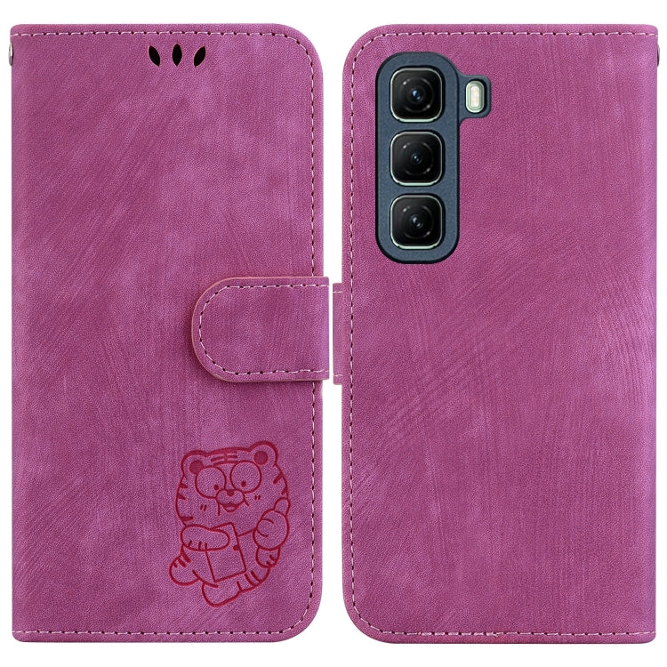 Funda de Cuero con Relieve de Tigre Pequeño para Infinix Hot 50 5G (Rosa Rojo)