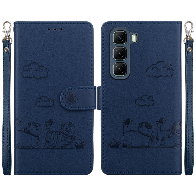 Funda de Cuero Rfid para Infinix Hot 50 5G con Diseño de Gatos (Azul)