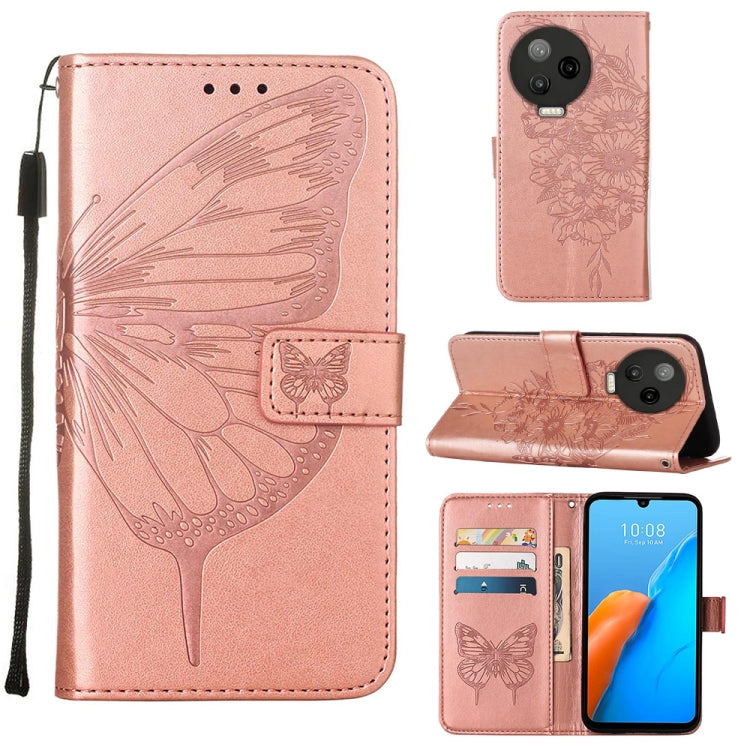 Estuche para Infinix Note 12 Pro 4G de Cuero con Tapa de Mariposa en Relieve (Oro Rosa)