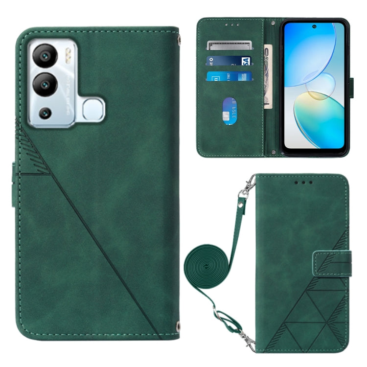 Funda de Cuero Crossbody 3D En Relieve para Infinix Hot 12 X6817 Flip (Verde Oscuro)