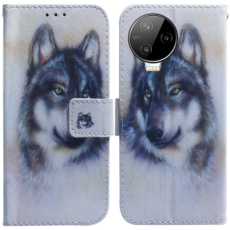 Estuche para teléfono Infinix Hot 12 Pro de cuero con tapa horizontal y dibujo lobo blanco
