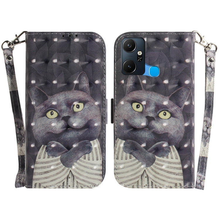 Estuche para Infinix Smart 6 Plus de Cuero con Tapa Horizontal y Diseño 3D (Gato Blanco y Negro)